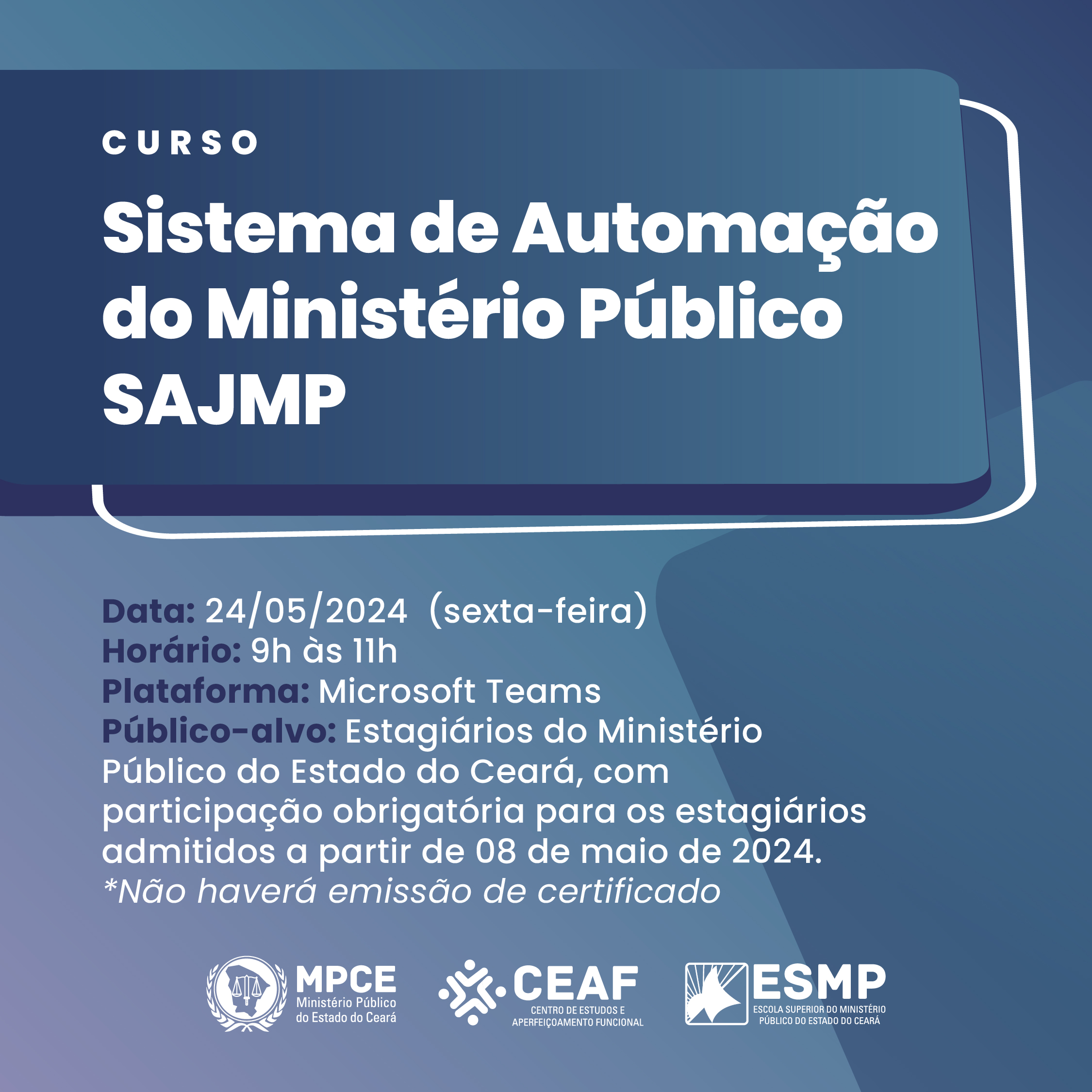 CURSO SOBRE SISTEMA DE AUTOMAÇÃO JUDICIAL DO MINISTÉRIO PÚBLICO - SAJMP - TURMA 7