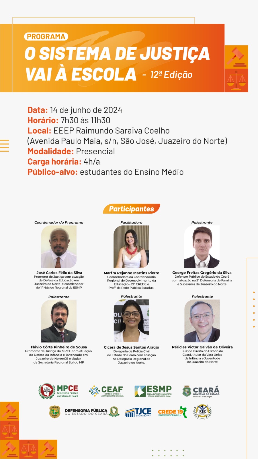 PROGRAMA: O SISTEMA DE JUSTIÇA VAI À ESCOLA - 12ª EDIÇÃO - 14.06.2024