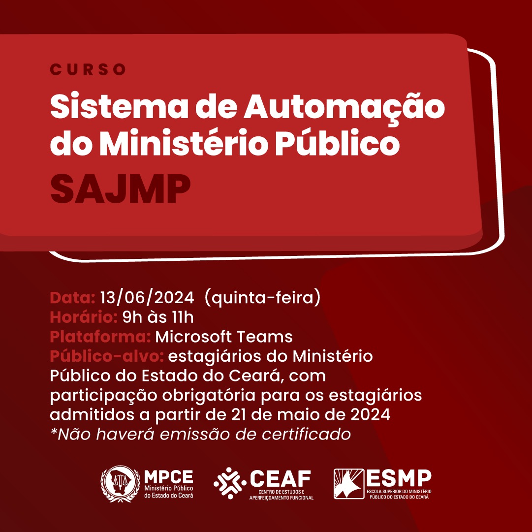 CURSO SOBRE SISTEMA DE AUTOMAÇÃO JUDICIAL DO MINISTÉRIO PÚBLICO - SAJMP - TURMA 8