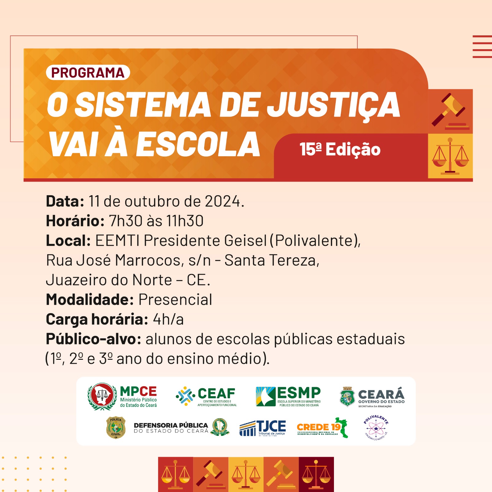 PROGRAMA: O SISTEMA DE JUSTIÇA VAI À ESCOLA - 15ª EDIÇÃO - 11.10.2024