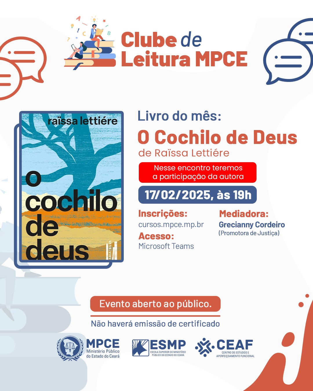 CLUBE DE LEITURA MPCE - O COCHILO DE DEUS - RAÍSSA LETTIÉRE - EDIÇÃO 40ª