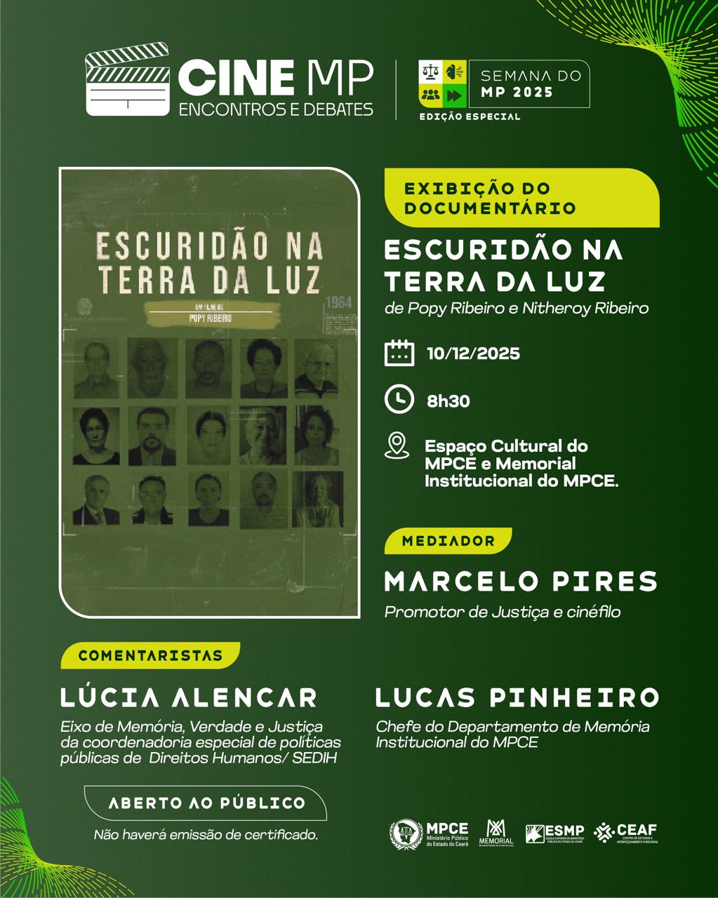 CINE MP - ENCONTROS E DEBATES - ESCURIDÃO NA TERRA DA LUZ - 10.12.2025