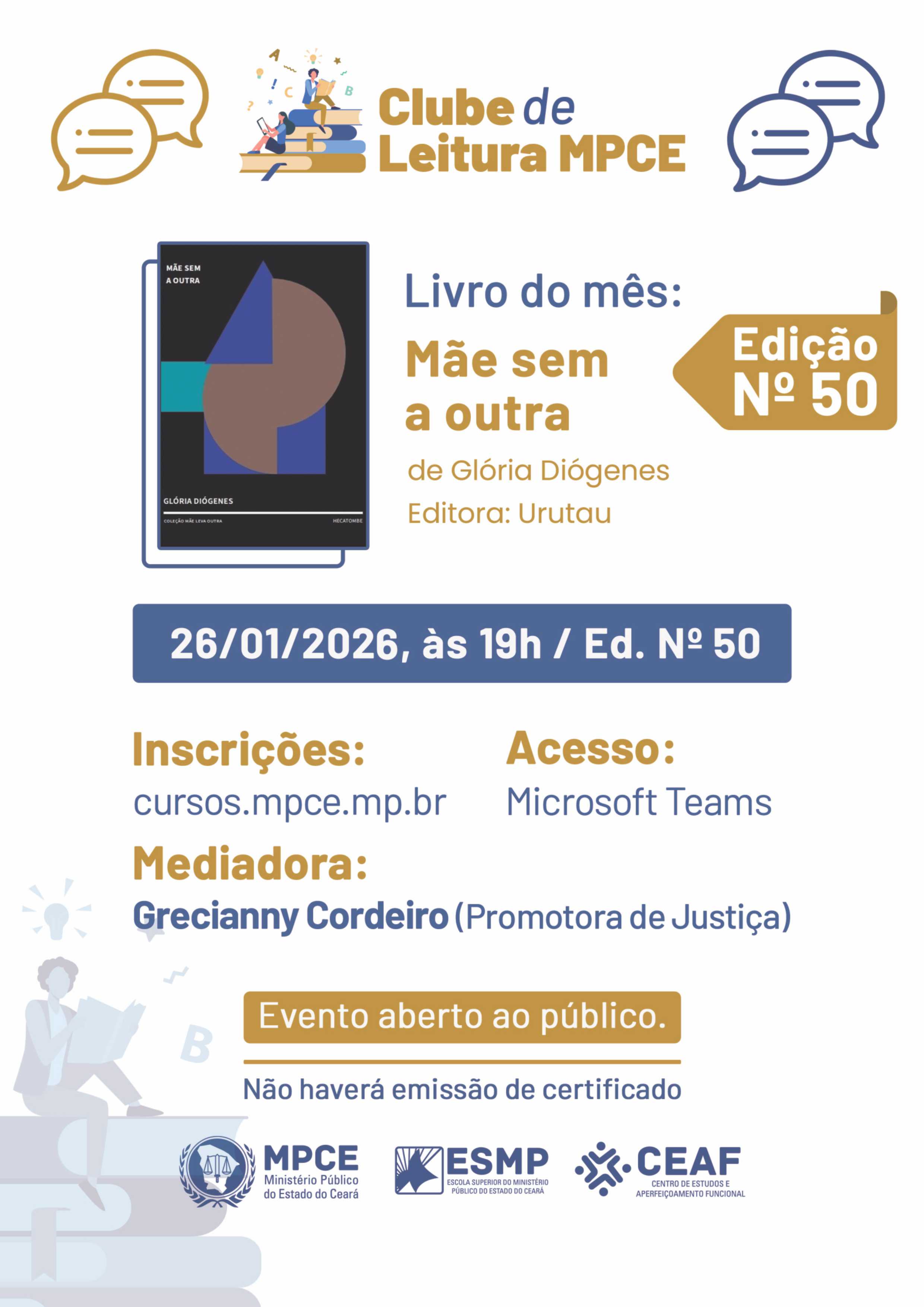 CLUBE DE LEITURA MPCE - MÃE SEM A OUTRA, GLÓRIA DIÓGENES - EDIÇÃO Nº 50 - 26.01.2026