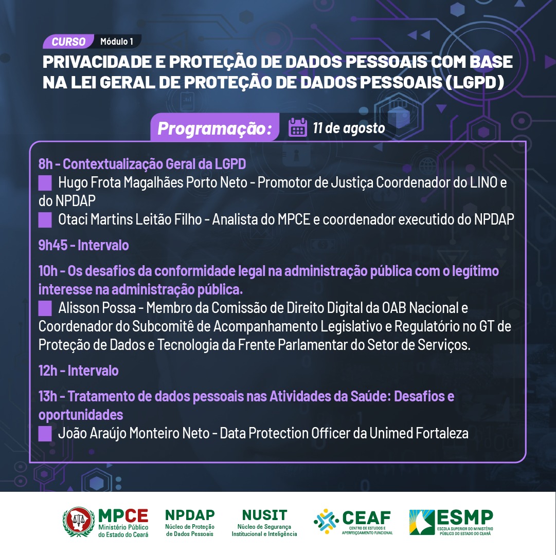 PRIVACIDADE E PROTEÇÃO DE DADOS PESSOAIS COM BASE NA LGPD - TURMA 1 - 11.08.2023