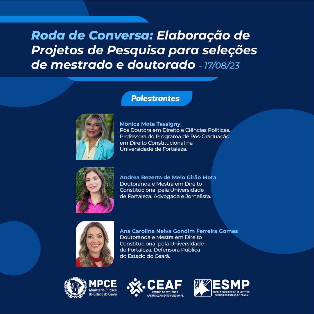 RODA DE CONVERSA: ELABORAÇÃO DE PROJETOS DE PESQUISA PARA SELEÇÕES DE MESTRADO E DOUTORADO -17.0