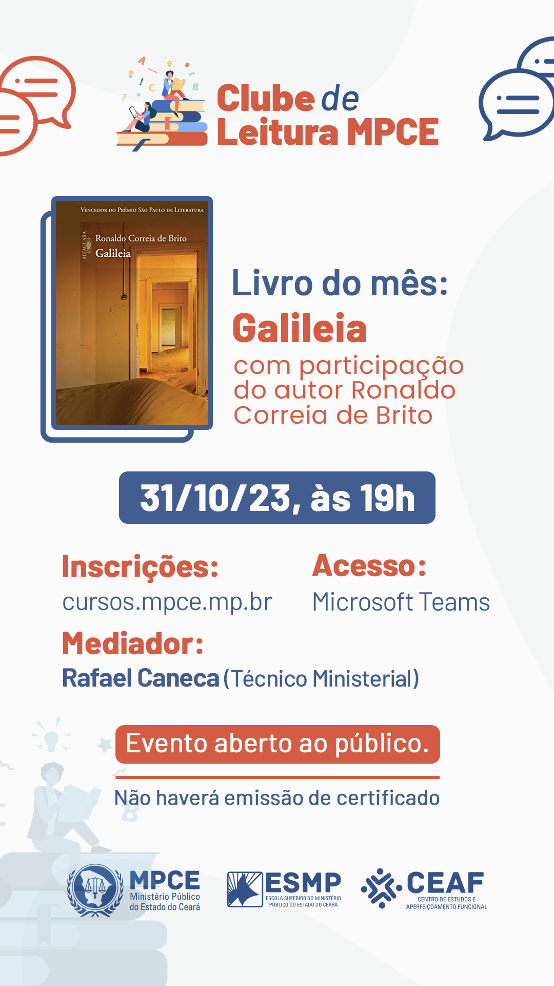 CLUBE DE LEITURA MPCE - GALILÉIA, DE RONALDO CORREIA DE BRITO - EDIÇÃO Nº 26 - 31.10.2023