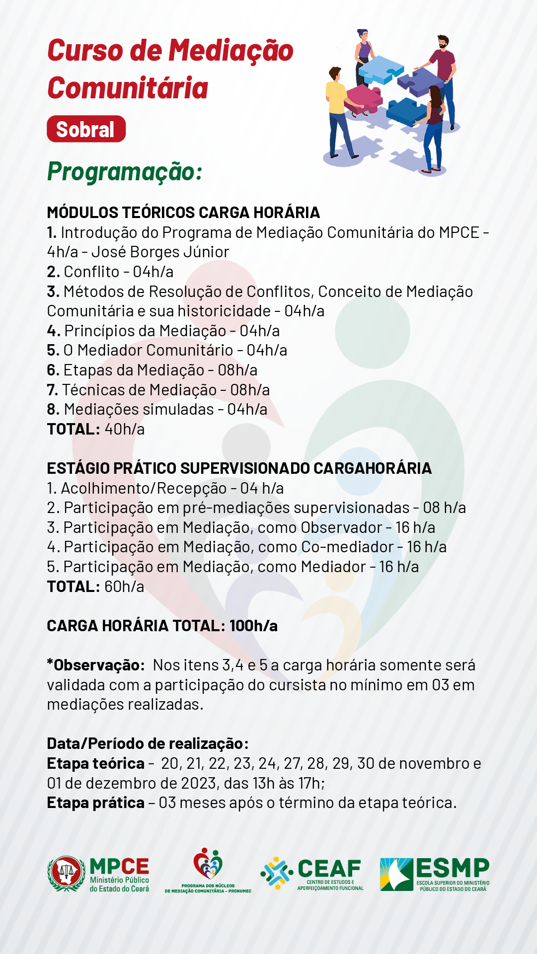 CURSO DE MEDIAÇÃO COMUNITÁRIA - SOBRAL/CE - 20.11 a 01.12.2023