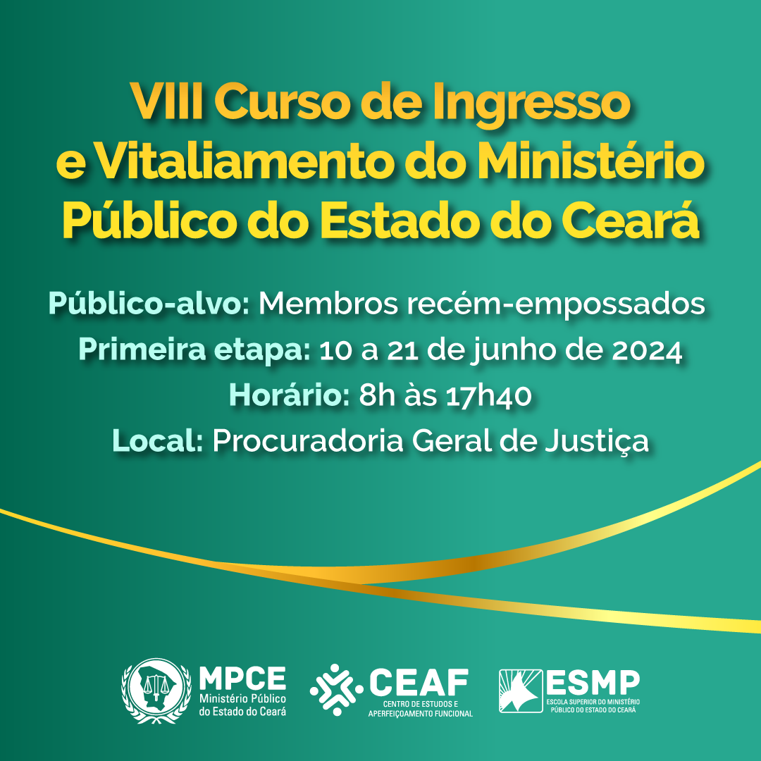 VIII CURSO DE INGRESSO E VITALICIAMENTO DO MINISTÉRIO PÚBLICO DO ESTADO DO CEARÁ - Junho/2024
